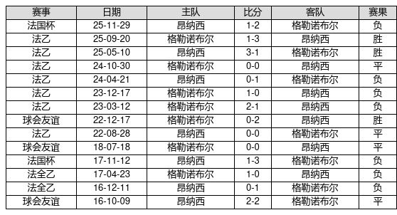 昂纳西 VS 格勒诺布尔两队近10年的交战次数为14场,昂纳西3胜4平7负,赢球概率为21.4%,平局概率为28.6%,输球概率为50.0%。
