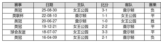 查尔顿 VS 女王公园两队近10年的交战次数为6场,查尔顿1胜3平2负,赢球概率为16.7%,平局概率为50.0%,输球概率为33.3%。